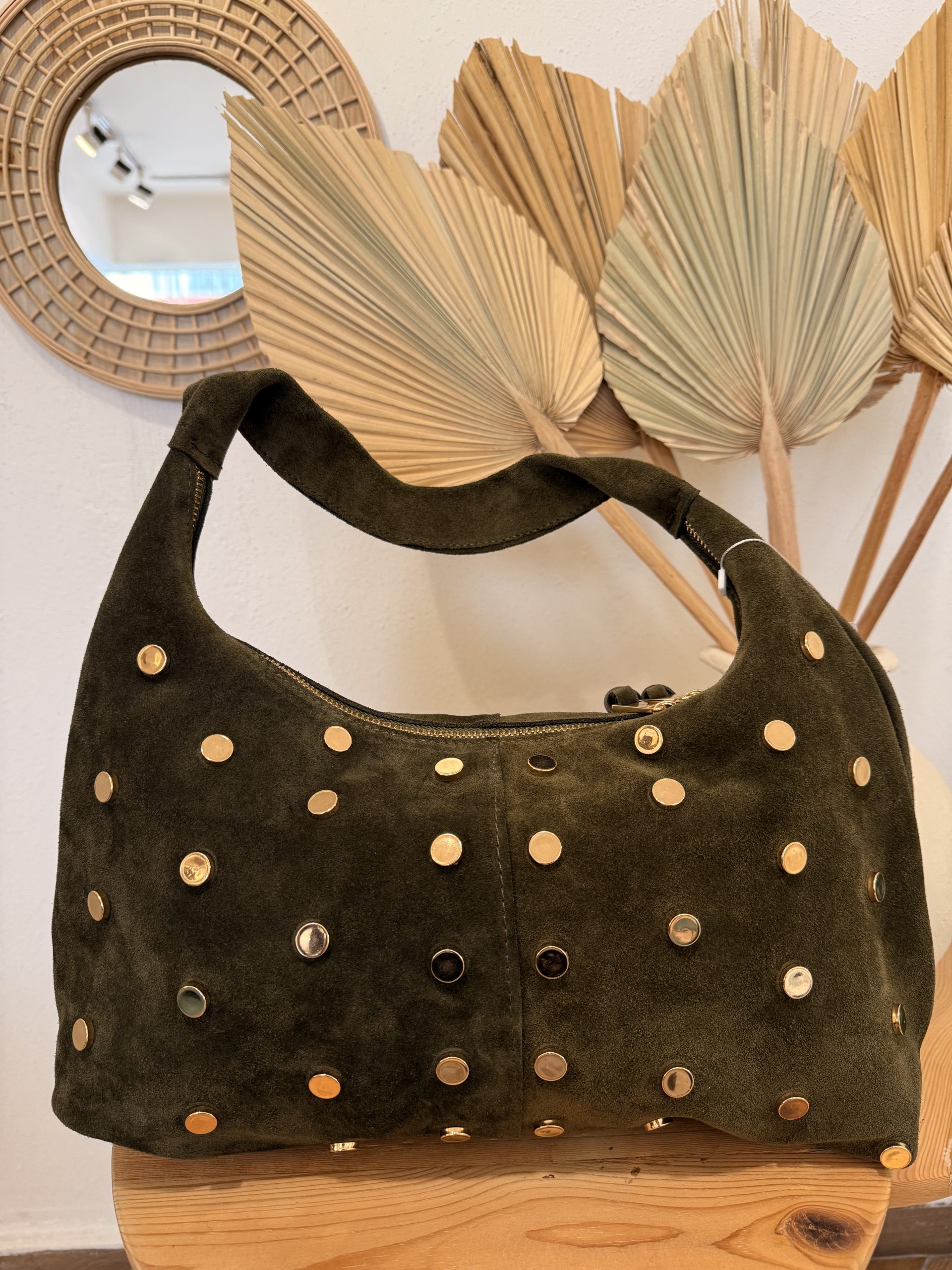 Haki Yeşil Zımba Detay Süet Çanta Ürün Açıklaması